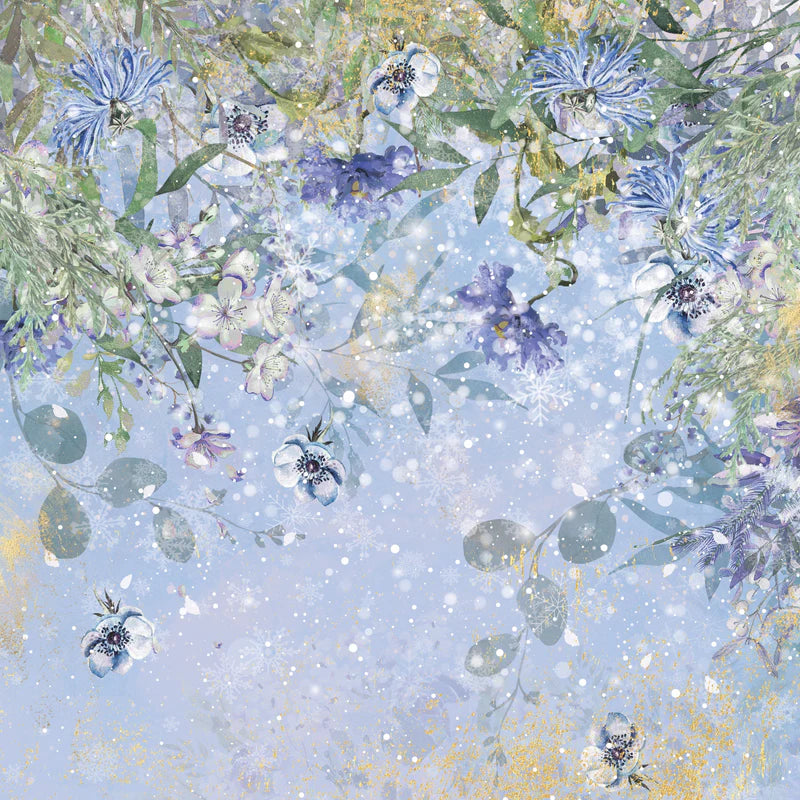- 36 sheets of patterned Christmas paper with an icy winter theme.