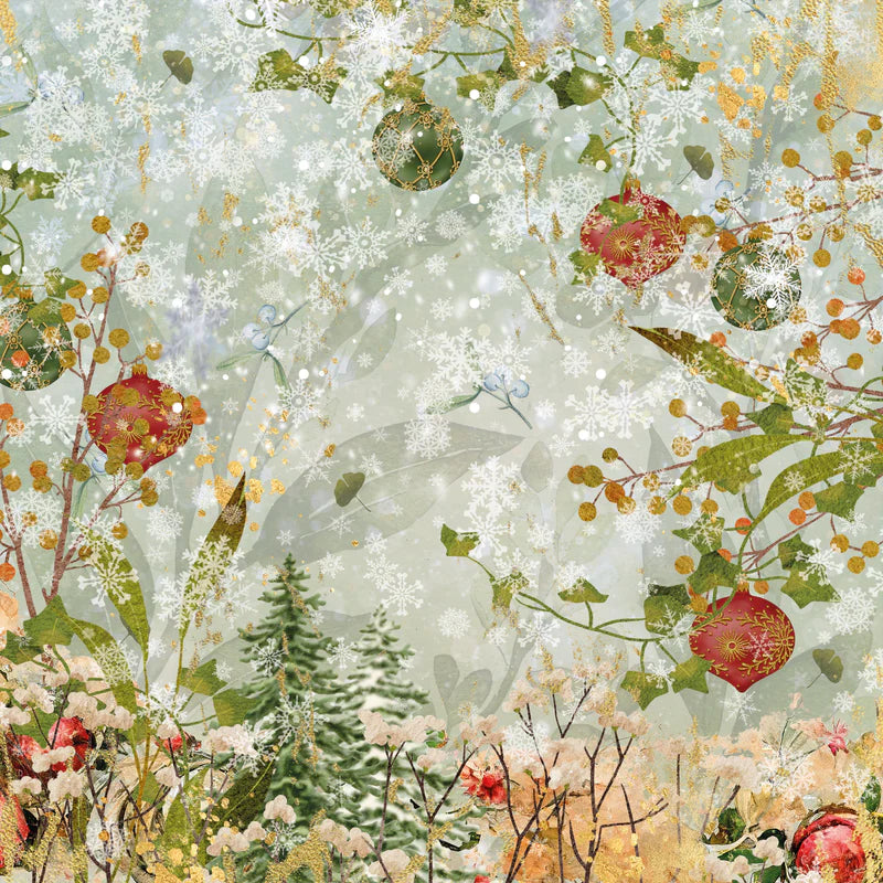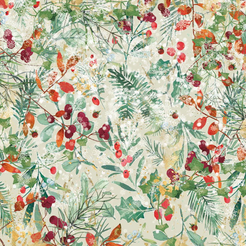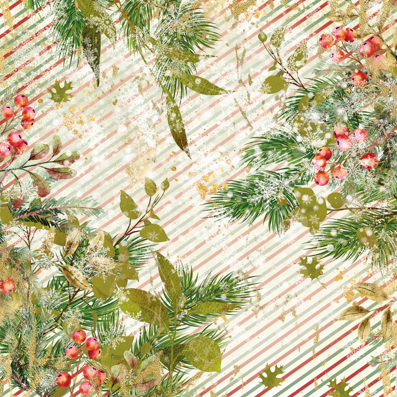- 36 sheets of patterned Christmas paper with a winter foliage theme.