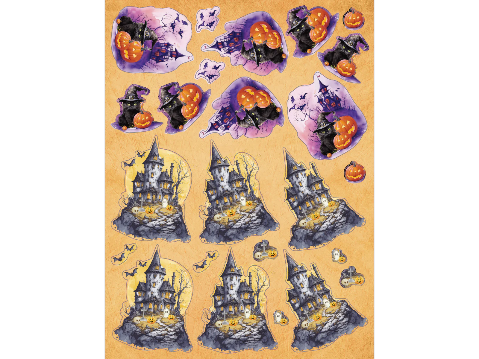 - Three different sheets of Halloween illustrations