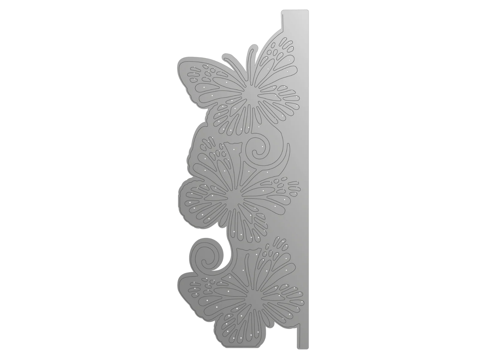 Designed for placement along the opening edge of a card, it adds a touch of drama and sophistication to any design. Compatible with most leading die-cutting machines (sold separately), this die measures 6.5" x 2.5", making it ideal for a variety of creative projects. Elevate your papercrafts with this beautiful butterfly design.