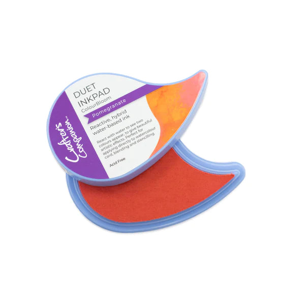 - Sunset magic - The Pomegranate Duet ColourBloom Inkpad from Crafter’s Companion is a deep orange-red ink that blooms and reveals shades of rich fiery pink and coral when combined with water. Create atmospheric backgrounds to give your cards and papercraft a unique and atmospheric look.