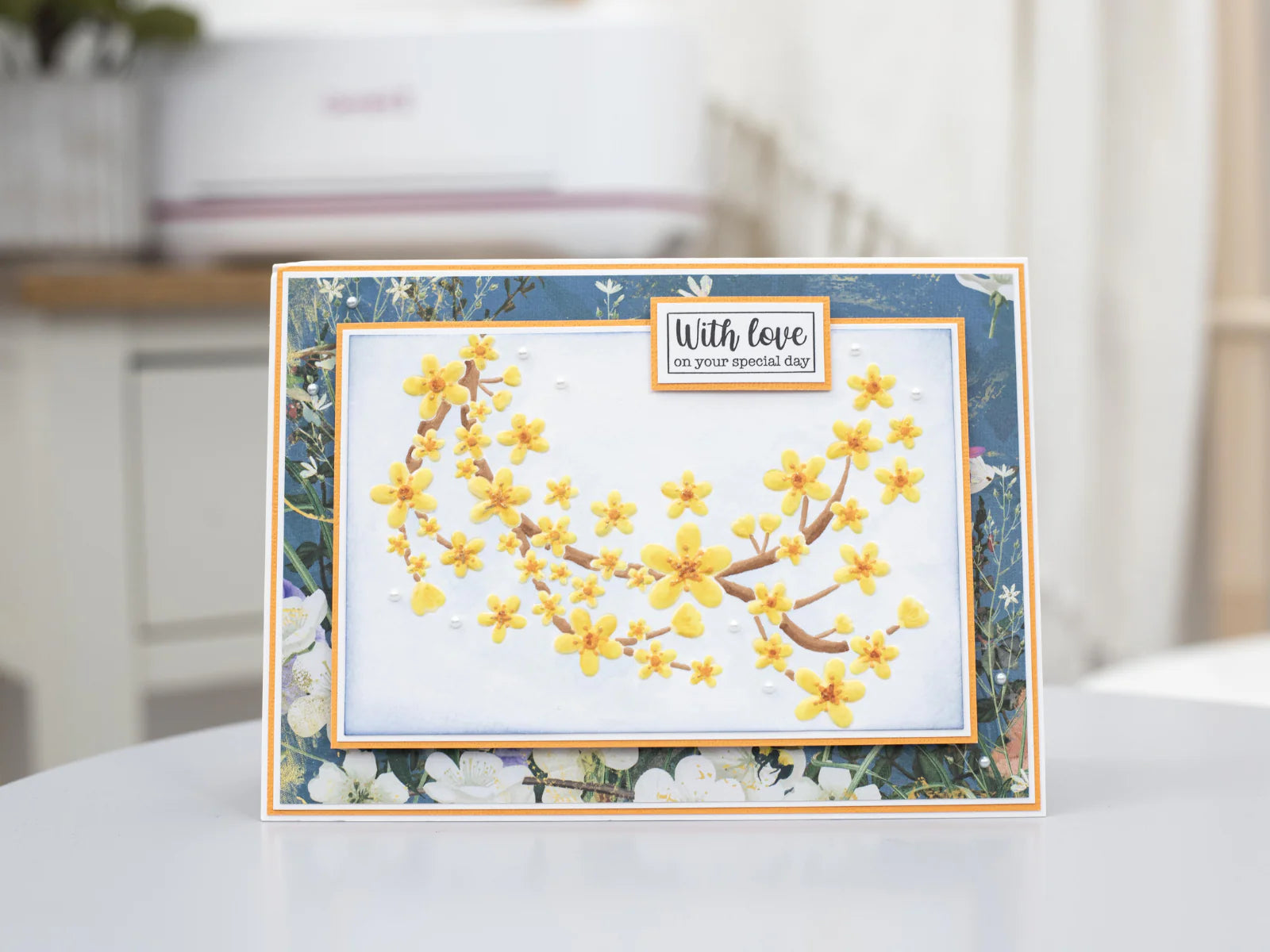 - Creates a 3D raised and embossed pattern of blossoming flowers on a branch.