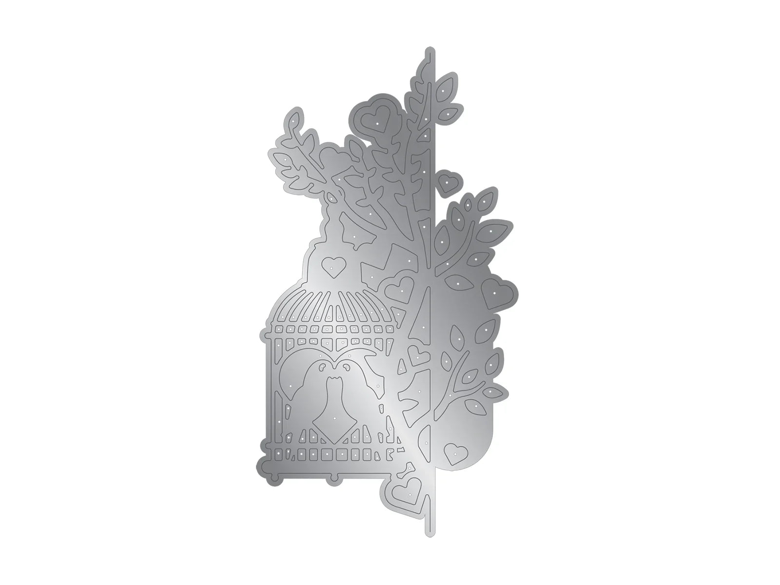 - One metal die that cuts out two lovebirds in a cage hanging from a branch.