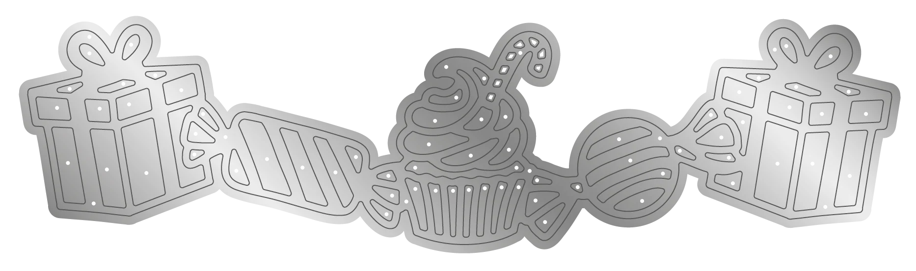 Crafter's Companion Metal Die Edge’able - Presents and Treats Give the gift of crafts with the Presents and Treats Metal Die Edge’able from Crafter's Companion. This metal die features the classic look of wrapped presents, a cupcake with a candy cane, and sweets that are perfect for Christmas-themed handmade cards, bespoke gift boxes, and more.Die cutting gives a level of delicacy to cut-out designs that simply couldn’t be created with scissors or a craft knife.Includes one die of wrapped Christmas presents with sweet treats.Die size: 6″ x 1.6″ (15.2cm x 4.1cm).Compatible with the Mini, Midi, Junior, and Gemini II die cutting and embossing machines.