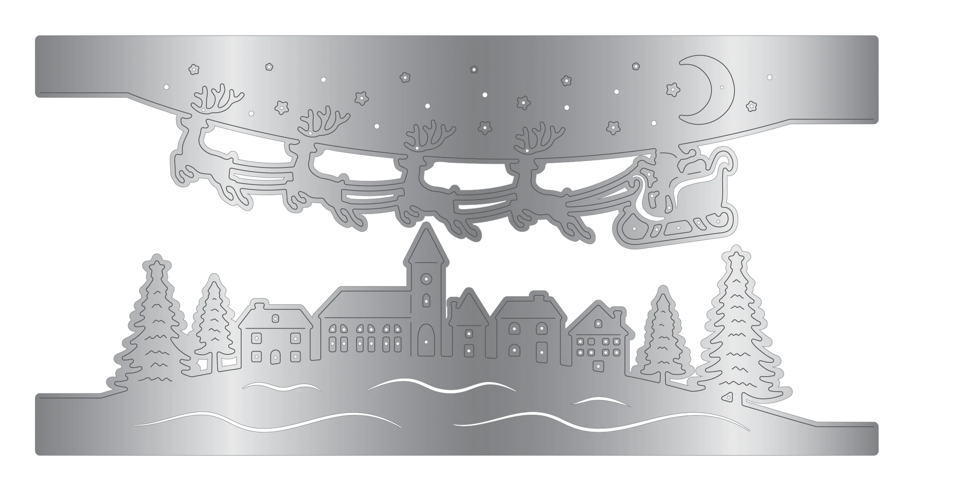 Crafter's Companion Metal Die Edge Set - Christmas Eve Create handmade Christmas cards that capture the magic of Christmas Eve with this Metal Die Edge Set from Crafter's Companion. Designed to be used together for cardmaking, these two metal dies create the top and bottom of the cards design featuring Santa’s sleigh on Christmas Eve flying over a snow-covered town.Die cutting gives a level of delicacy to cut-out designs that simply couldn’t be created with scissors or a craft knife. Includes two metal dies to create the scene of Santa’s sleigh flying over the rooftops on Christmas Eve.Largest die size: 18cm x 5cm (7.1″ x 2″).Compatible with the Mini, Midi, Junior, and Gemini II die cutting and embossing machines.