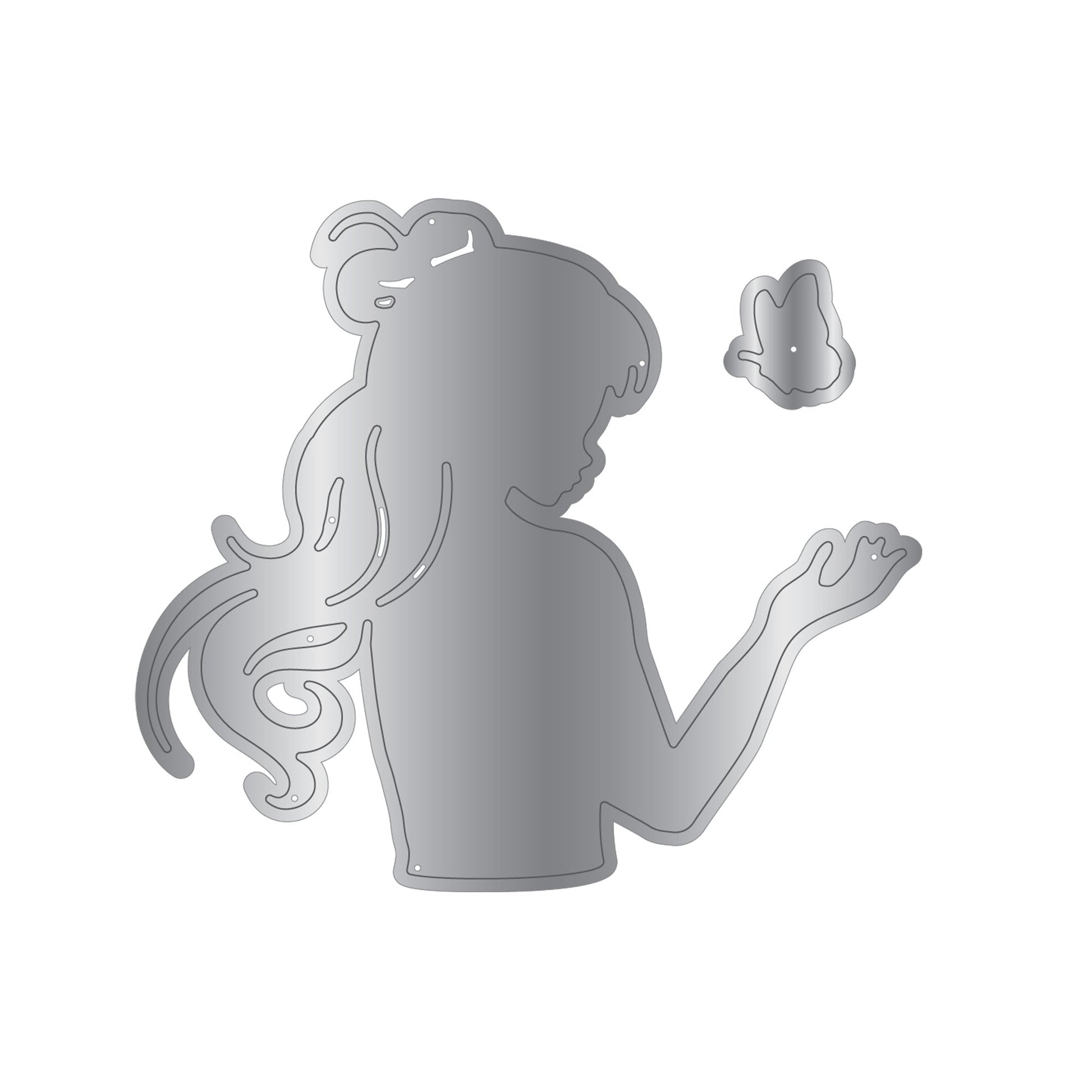 Crafters Companion Metal Die, Stamp & Stencil Set - Butterfly Kisses Cast a gorgeous shadow on your crafts and projects with this collection of Silhouette Dies from Crafter's Companion. Whether you’re looking to add romance with couples lost in their own world together or girls embracing the softness of nature, there’s something to give your paper craft projects a heartfelt look. Bring a flutter of the natural to your crafts and projects with the Butterfly Kisses Metal Die, Stamp & Stencil Set by Crafter's Companion. This set creates a gorgeous image of a girl surrounded by butterflies, ideal for a whimsical handmade greeting card, scrapbook page, and more. Die cutting gives a level of delicacy to cut-out designs that simply couldn’t be created with scissors or a craft knife. The clear stamps are transparent, so you can see through to align the design with perfect precision and place your stamps easily. This 4-piece set includes two metal dies, one stencil, and one stamp Metal size: 3.2″ x 2.7″ (8.1cm x 6.9cm); Stencil size: 2.9″ x 3″ (7.4cm x 7.6cm); Stamp size: 2.3″ x 1″ (5.8cm x 2.5cm) Compatible with the Mini, Midi, Junior, and Gemini II die cutting and embossing machines