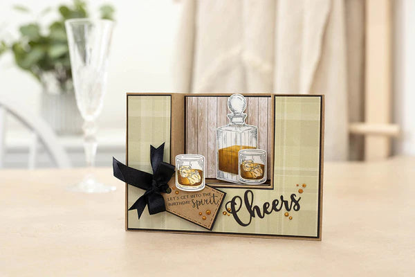 - Two stamps and two matching dies to create and cut out illustrations of a whiskey glass and decanter.