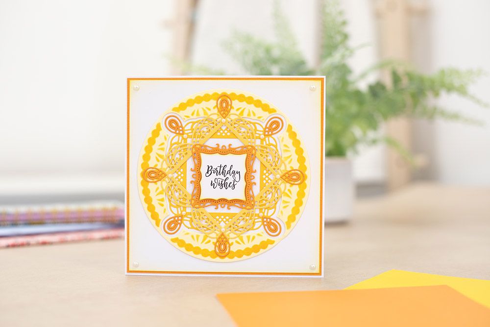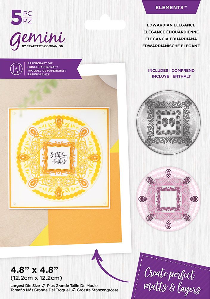 - 5 dies to create a circular outer frame with two nesting square frames inside