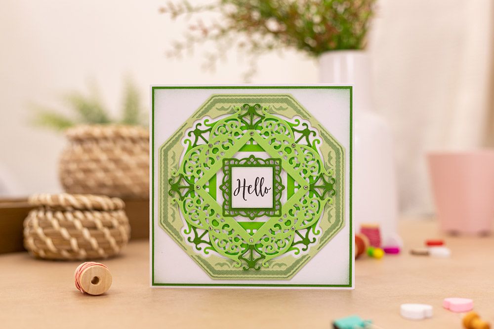 - 4 dies to create an octagonal outer frame with two nesting square frames inside