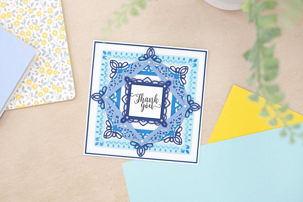 - 5 dies to create a trio of nesting square dies featuring delicate and pretty die-cut detail