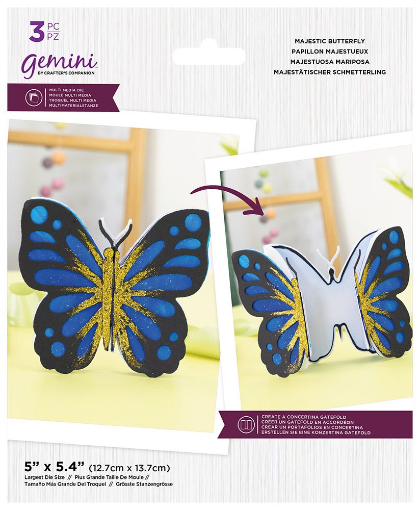 - 3 dies to create a butterfly-shaped Fold Back Shaped Gatefold card