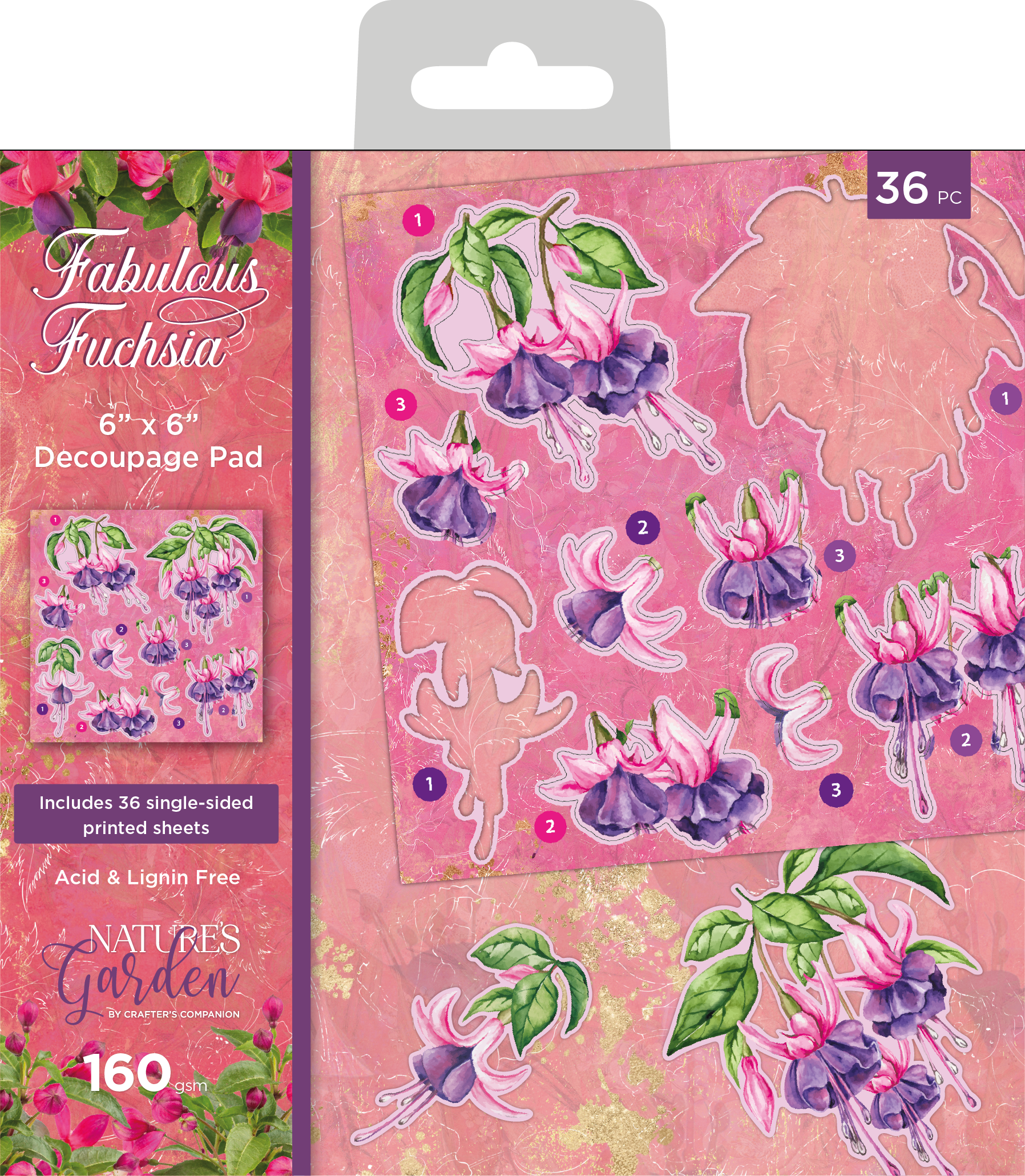 Nature's Garden - Fabulous Fuchsia - 6” x 6” Decoupage Pad