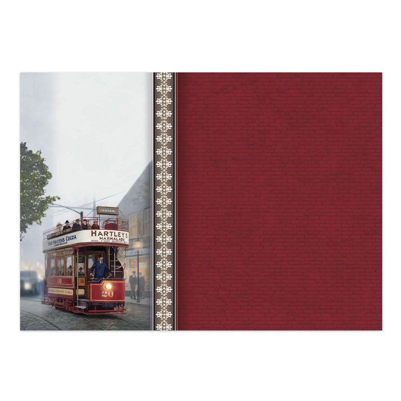- Features a vintage tram