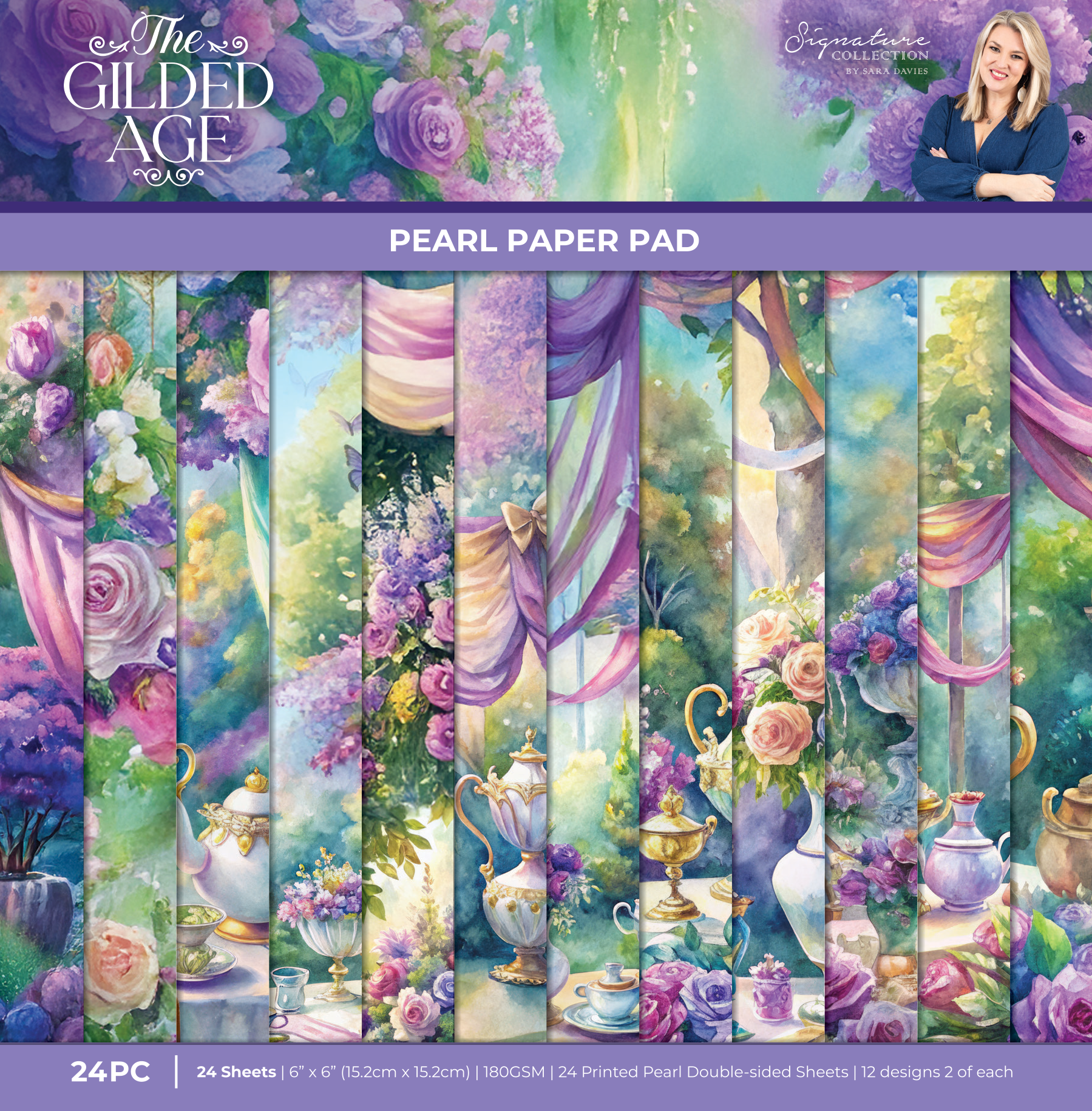 Sara Signature The Gilded Age - 6”x6” Paper Pad 24 sheets, 2 of each design - Pearl
