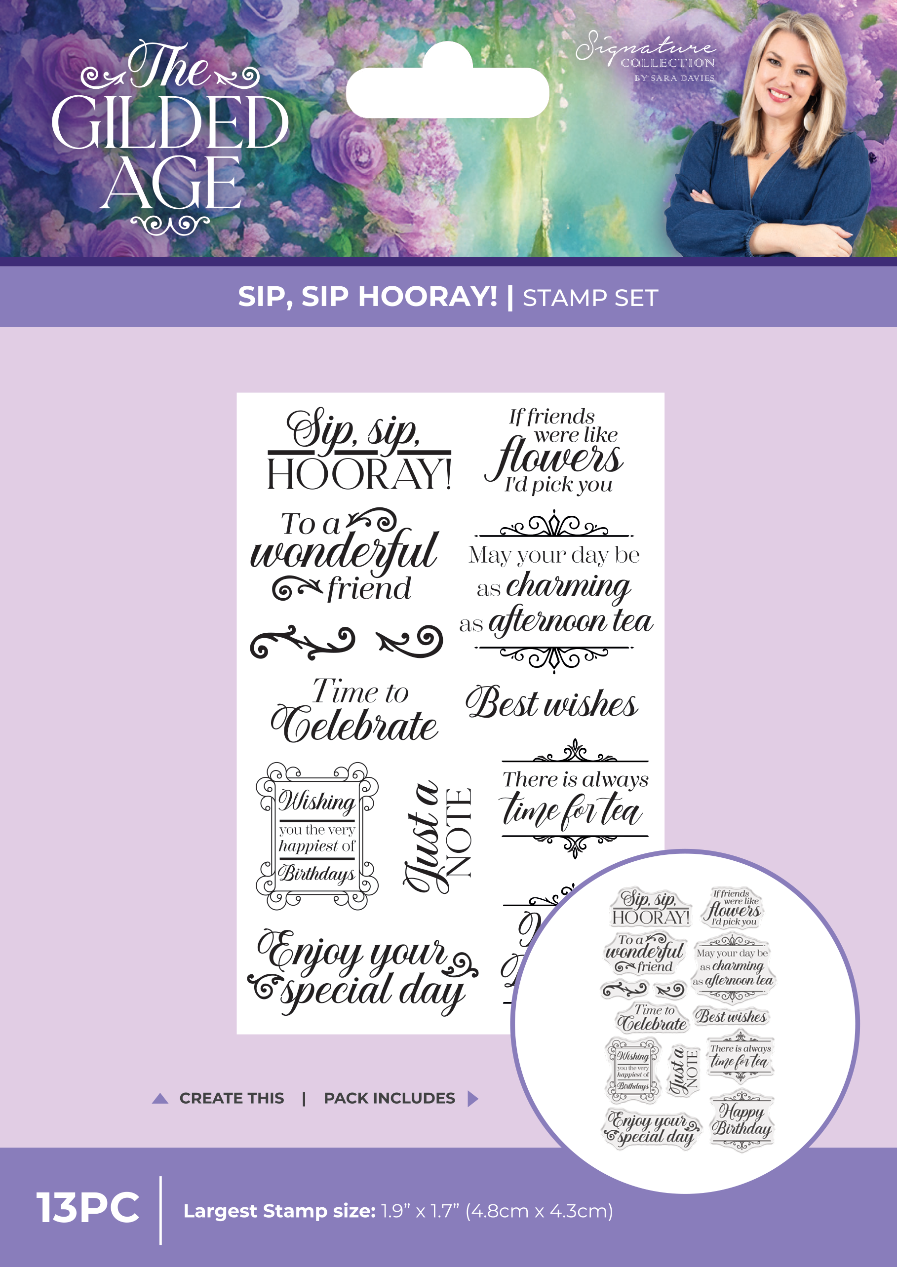 Sara Signature The Gilded Age Clear Acrylic Stamp - Sip, Sip Hooray!