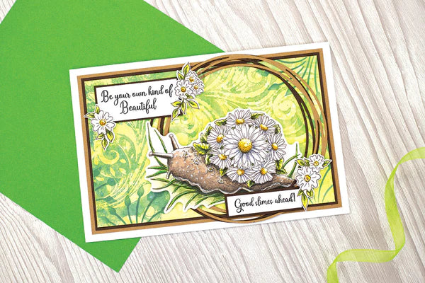 - Centerpiece stamp and matching die to create a hand-drawn illustration of a floral snail